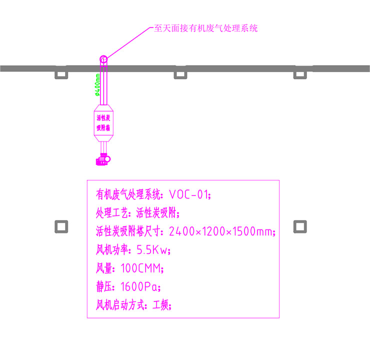 生產廠房內的工藝廢氣由於設備數量及產汙點均較多,且分布較廣,廢氣收集係統較為複雜;項目依據不同工序生產線情況采用不同收集和處理方式。